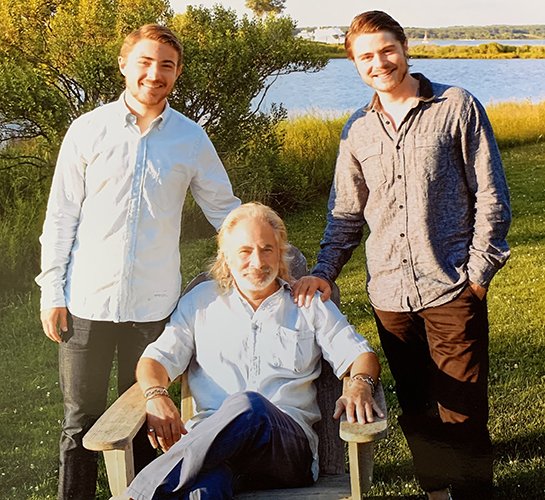 Circa 2014 - 10 years after diagnosis of terminal pancreatic cancer, author celebrates being cancer-free with my sons Noah (left) and Eli.